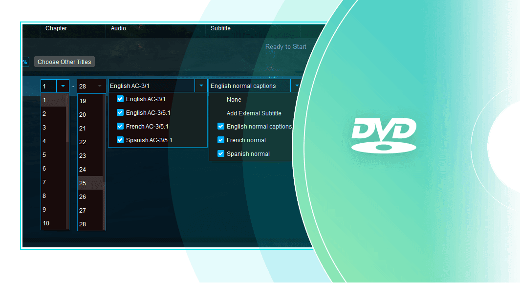 DVDFab Blu-ray to DVD Converter can combine multiple Blu-ray titles onto a single DVD-5 or DVD-9 while preserving the original chapter positions and also allowing you to rearrange them according to your needs. The output content of Blu-ray to DVD conversion is completely under your control. You can convert the entire Blu-ray disc or just a portion of it, freely select any audio track and subtitles from the source and convert them to DVD standard subpicture streams. You can also clearly see the progress of the Blu-ray to DVD conversion process, with the remaining time, elapsed time, current percentage, and more.
