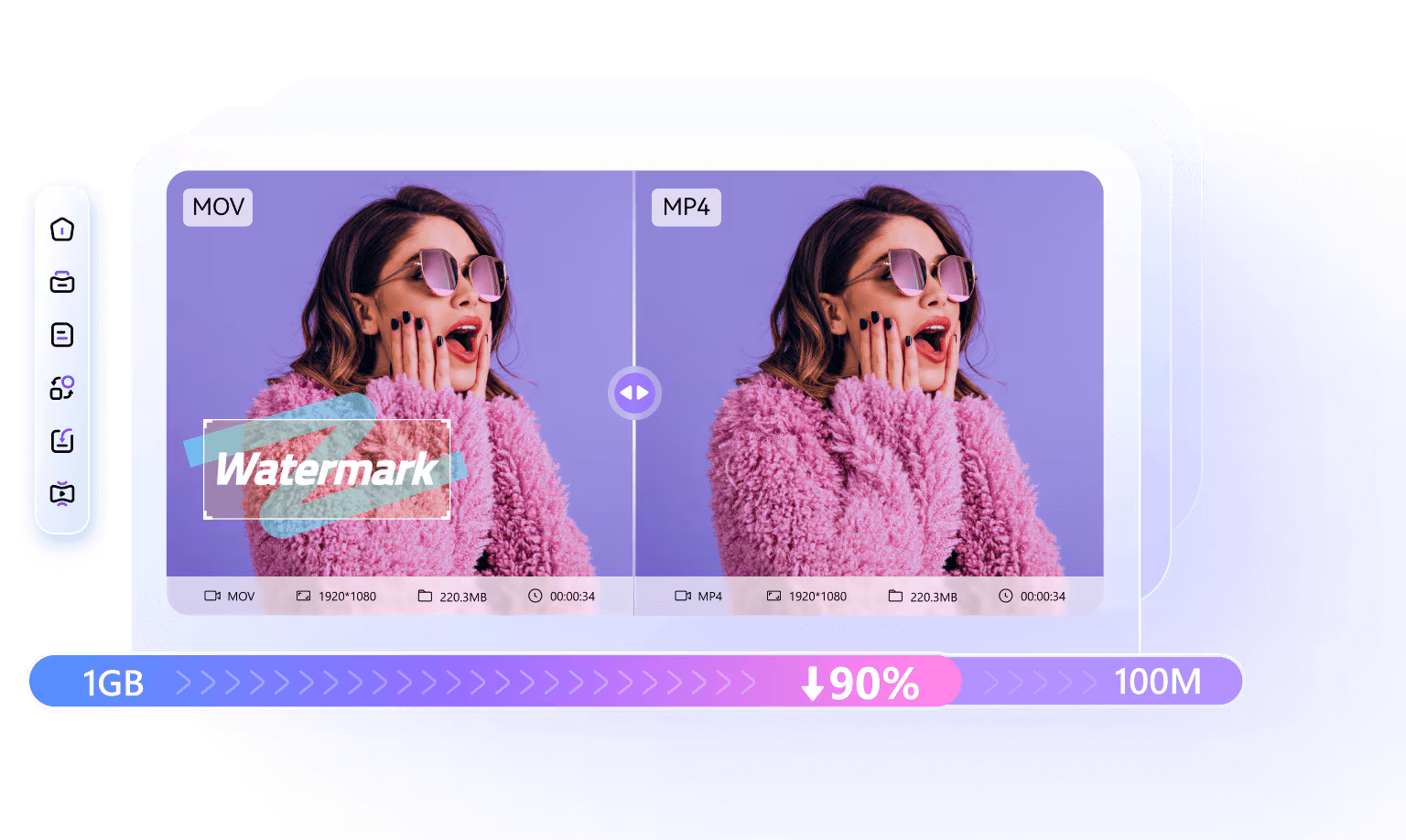 AI compression mode guarantees high-quality video output with size reduction of up to 90%.